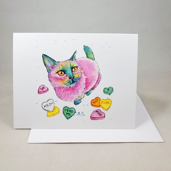 Candy Kitten Sweet Heart Watercolour Fantasy Valentine Cat Etsy Canada