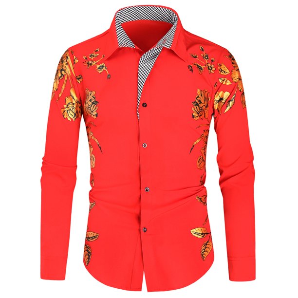 Aayomet Hawaiian Shirt For Men Lapel Winter Long Sleeve Men S Bronzing And Casual Printing Bowling Shirts For Men Red Xl Walmart Com